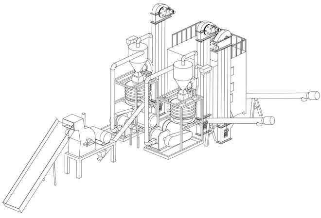 ?2:設(shè)備以多機組合的結(jié)構(gòu),一次投料,多機完成,配以自動輸送,隔音技術(shù),冷卻系統(tǒng)等,達(dá)到金屬和塑料分離回收工作。