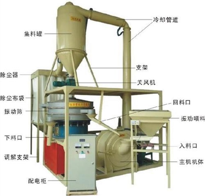 該鋁塑磨粉機(jī)是本廠自行研制的新型磨粉機(jī),其特點(diǎn)如下: