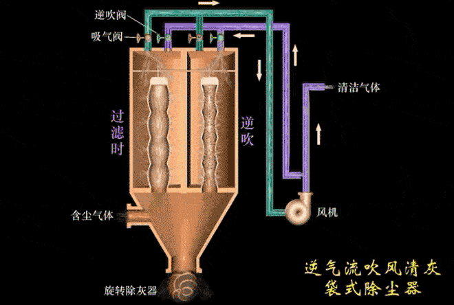 袋式除塵器高的除塵效率是與它的除塵機(jī)理分不開的。含塵氣體由除塵器下部進(jìn)氣管道,經(jīng)導(dǎo)流板進(jìn)入灰斗時,由于導(dǎo)流板的碰撞和氣體速度的降低等作用,粗粒粉塵將落入灰斗中,其余細(xì)小顆粒粉塵隨氣體進(jìn)入濾袋室,由于濾料纖維及織物的慣性、擴(kuò)散、阻隔、鉤掛、靜電等作用,粉塵被阻留在濾袋內(nèi),凈化后的氣體逸出袋外,經(jīng)排氣管排出。濾袋上的積灰用氣體逆洗法去除,清除下來的粉塵下到灰斗,經(jīng)雙層卸灰閥排到輸灰裝置。濾袋上的積灰也可以采用噴吹脈沖氣流的方法去除,從而達(dá)到清灰的目的,清除下來的粉塵由排灰裝置排走。袋式除塵器的除塵效率高也是與濾料分不開的,濾料性能和質(zhì)量的好壞,直接關(guān)系到袋式除塵器性能的好壞和使用壽命的長短。而過濾材料是制作濾袋的主要材料,它的性能和質(zhì)量是促進(jìn)袋式除塵技術(shù)進(jìn)步,影響其應(yīng)用范圍和使用壽命。